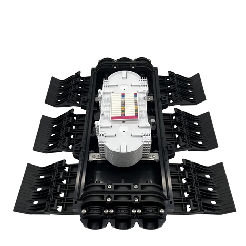 96 144 288 kern faseroptische verbundbox 3 eingänge 3 ausgänge ip68 fasergehäuse innenlinien-typ pc material anti-uv faserspleißverschluss